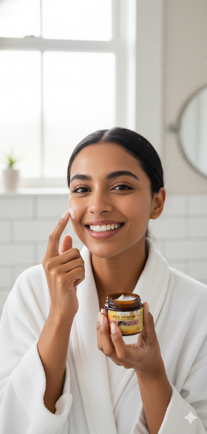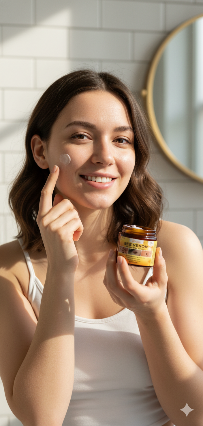 O Veneno de Abelha engana a pele para estimular colagénio naturalmente. Firmeza imediata, sem dor.